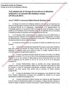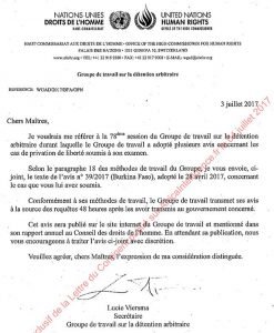 Le groupe de travail des Nations unies sur la détention arbitraire demande la libération de Djibrill Bassolé et qualifie sa détention d’«arbitraire». Dans le rapport fourni , on peut lire que le gouvernement du Burkina Faso dans réponse au Groupe de travail a déclaré que Djibrill Bassolé s’est rendu lui même et a accepté volontairement de se rendre à la gendarmerie pour y être incarcéré (A lire à la page 4 du document). Une affirmation qui laisse poser beaucoup de questions. Bref vous pouvez consulter tout le rapport ci-dessous.